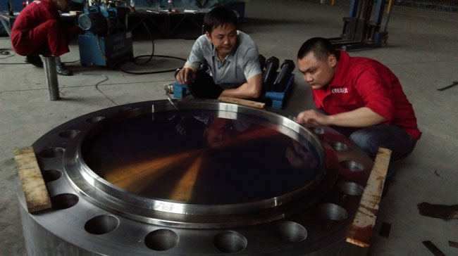 在神華多部門(mén)專(zhuān)家組離開(kāi)后,“成都植源”便成立了專(zhuān)門(mén)的大口徑法蘭技術(shù)攻關(guān)團隊,由公司總工程師侯亮平負責,對課題問(wèn)題展開(kāi)了系統工作:針對煤制油項目加氫反應器的DN900自緊式法蘭,提出研究方案,進(jìn)行技術(shù)論證,從人員組織、主攻方向明確、設計校審明確,到責任落實(shí)、材料落實(shí)、機具落實(shí)、工裝落實(shí),確保理論和模擬實(shí)驗實(shí)施的切實(shí)可行;又投入近百萬(wàn)的科研經(jīng)費,對上述工作加以保障。