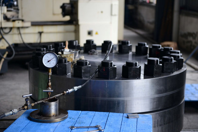 加氫反應器上最大自緊式法蘭口徑為DN900,設計壓力為22Mpa,為此ZY-LOCDN900實(shí)驗壓力增加至60Mpa,
